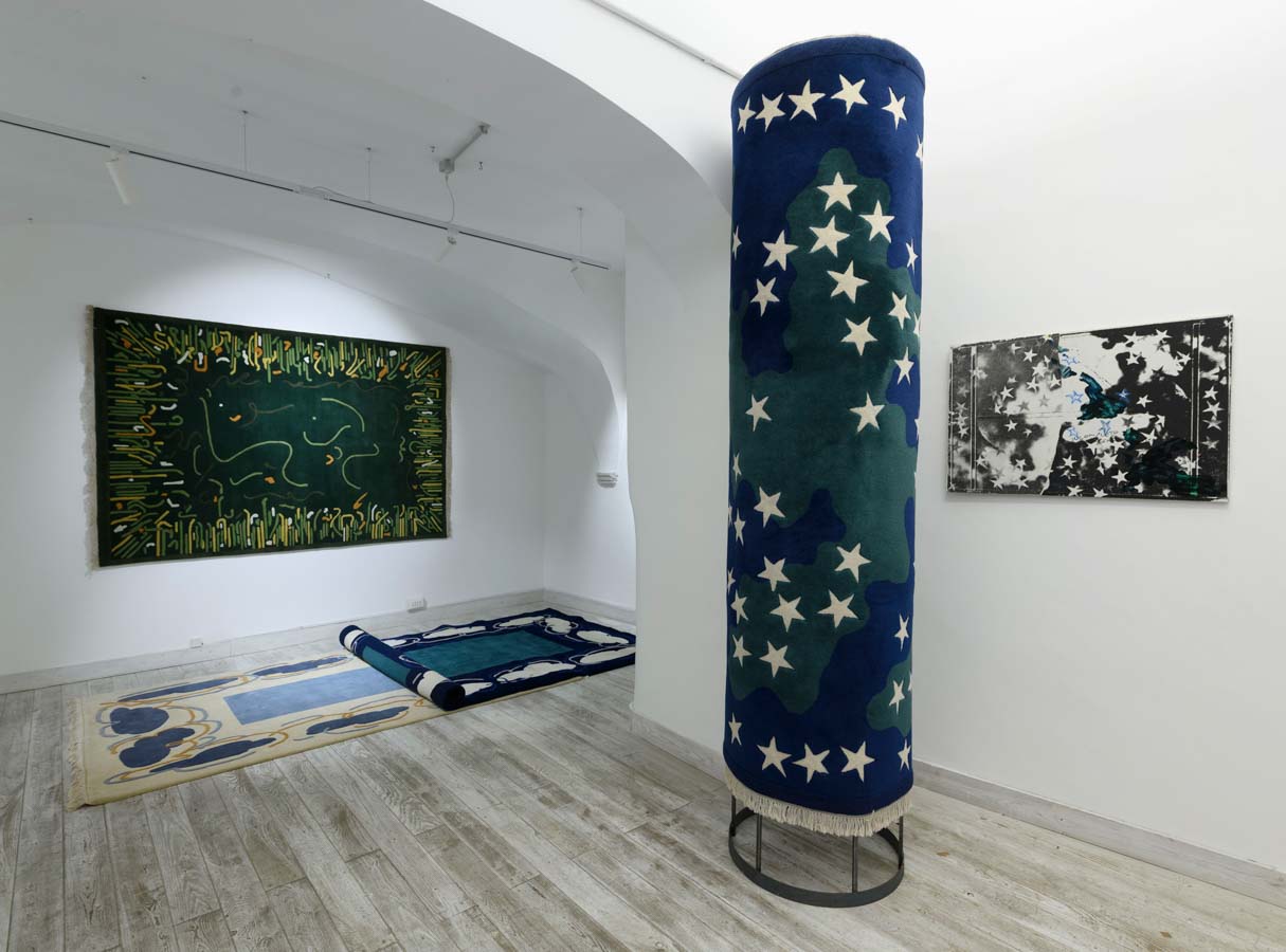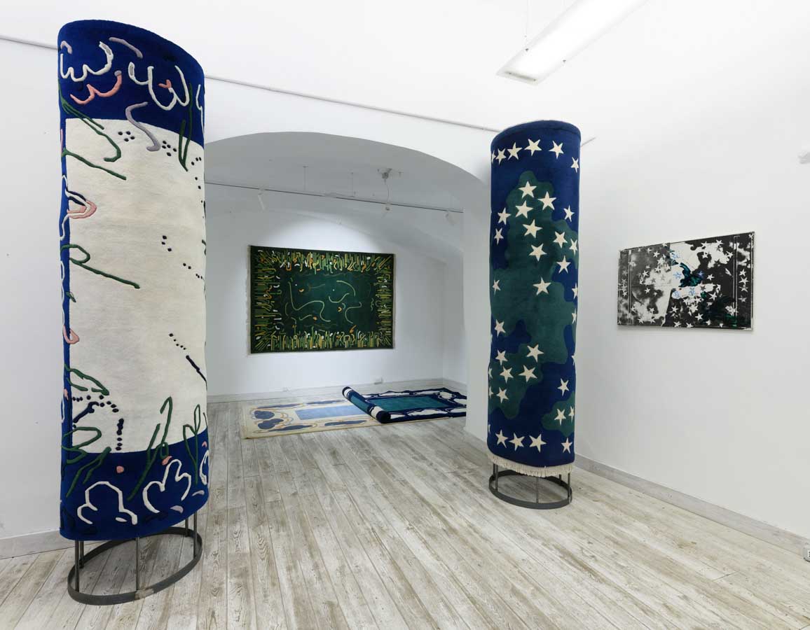 EDDart is proud to present, from October 27 to December 5, an unprecedented exhibition by Mario Schifano featuring his only series of carpets alongside the paintings created for their realization.